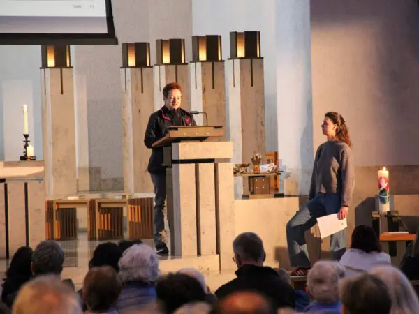 Im Rahmen eines Gottesdienstes in Flawil spricht Yolima über ihre Arbeit und ihren Alltag in Kolumbien.