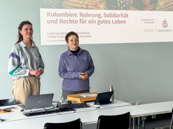 Der Auftritt an der Universität Luzern ist einer von 17, die Yolima während knapp drei Wochen als Gast von Fastenaktion während der Ökumenischen Kampagne durch sieben Kantone geführt haben. Überall hat die Direktorin der Vicaría del Sur von ihrer Arbeit mit benachteiligten Bevölkerungsschichten im ländlichen Kolumbien berichtet. Die kirchliche Organisation, die 1987 gegründet wurde und seit 1988 von Fastenaktion unterstützt wird, begleitet aktuell rund 150 Familien in der Region Caquetá im Süden des Landes.