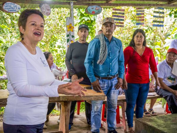 Yolima Salazar Higuera (63) ist Sozialarbeiterin und leitet in der kolumbianischen Amazonasregion die Organisation Vicaría del Sur, eine langjährige Partnerorganisation von Fastenaktion. Im Zentrum ihrer Arbeit stehen agrarökologische Anbaumethoden, der Schutz des Amazonasgebiets sowie die Stärkung der Menschenrechte in der Region.