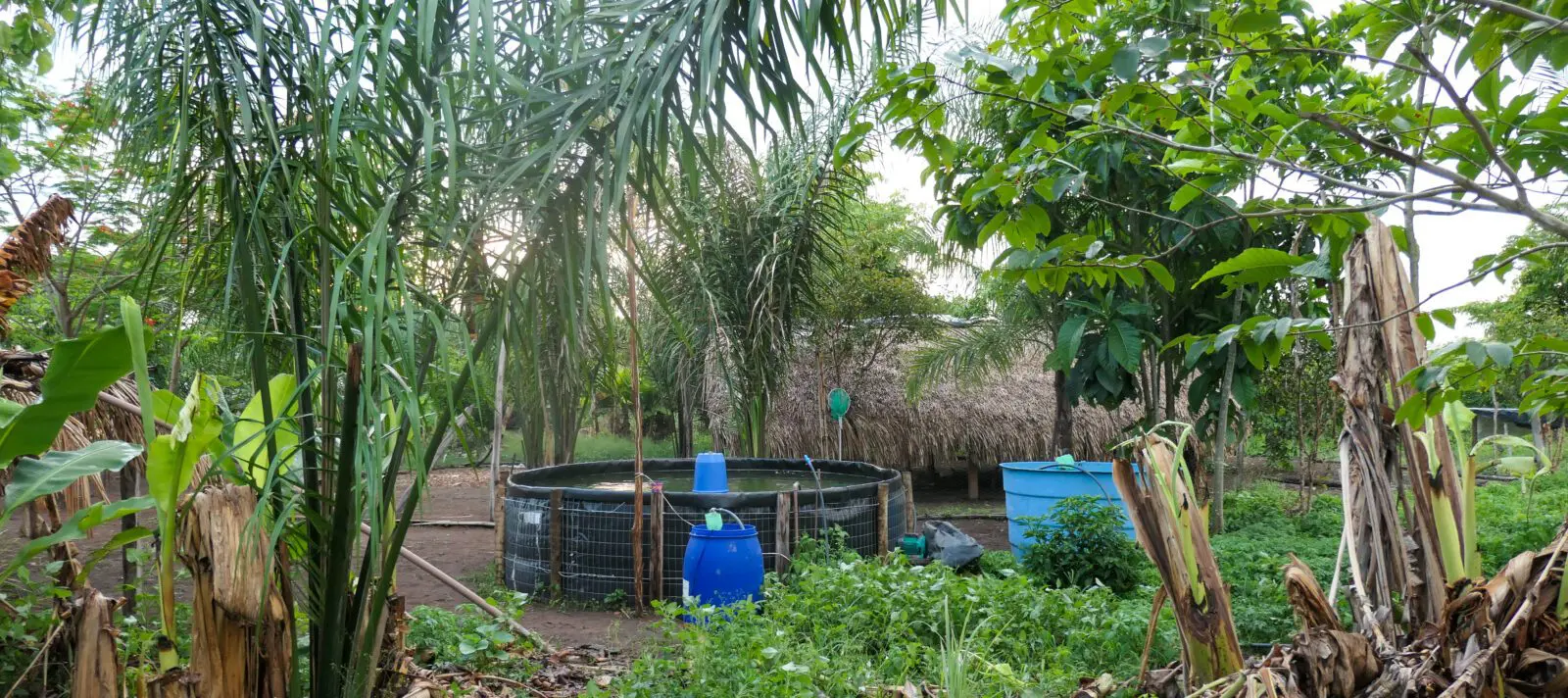 Das System umfasst eine Fischzucht, ein Feld mit Gemüse und Obst, eine kleine Kompostieranlage, sowie die Haltung von Kleintieren (Hühner und Schweine). Die Fischzucht in einem 10‘000 Liter Becken ist das Herzstück – sie liefert nährstoffreiches Wasser für das nahegelegene Feld. Auch die festen Rückstände aus Fischfutter und -ausscheidungen dienen als natürlicher Dünger und versorgen den Boden mit Nähstoffen. Gemüse und Früchte werden systematisch angebaut, damit grössere Pflanzen wie Papaya, Bananen oder Mais den kleineren Gewächsen Schatten spenden. Was die Familie nicht für den Eigenbedarf braucht, kann sie verkaufen und so zusätzliches Einkommen generieren. Bereits nach einem Jahr sind erste Resultate sichtbar: «Die Bananenstauden, die mit dem Wasser aus der Fischzucht gegossen wurden, sind grösser, und der Mais wächst schneller», berichtet Yaiku. Auch die Fische sind bald gross genug für den Verzehr und Verkauf.