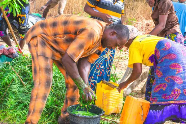 Gnamou bei der Herstellung der biologischen Insektenabwehr.