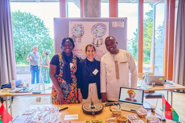 Das Koordinationsteam von Burkina Faso, Natacha Compaoré und Barthelemy Sam, gemeinsam mit der Programmverantwortlichen Aja Diggelmann (Mitte).