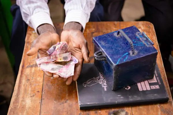 Ein finanzielles Sicherheitsnetz ist auch die gemeinsame Sparkasse der Solidaritätsgruppe. Nach dem Essen setzen sich die Mitglieder im Kreis, jede und jeder gibt den verabredeten Betrag für die Spargruppe oder kann im Notfall einen kleinen Kredit mit niedrigem Zins aus der Kasse beziehen. «Früher konnte ich meine Kinder nicht immer zur Schule schicken, weil nicht genug Geld da war», erzählt Jael Okalio. «Und wenn sie wegen Unterernährung aufgeblähte Bäuche hatten, versteckte ich sie im Haus, weil ich mir keinen Arzt leisten konnte. So ging es allen hier in der Region. Jede und jeder war auf sich allein gestellt, alle waren egoistisch.»